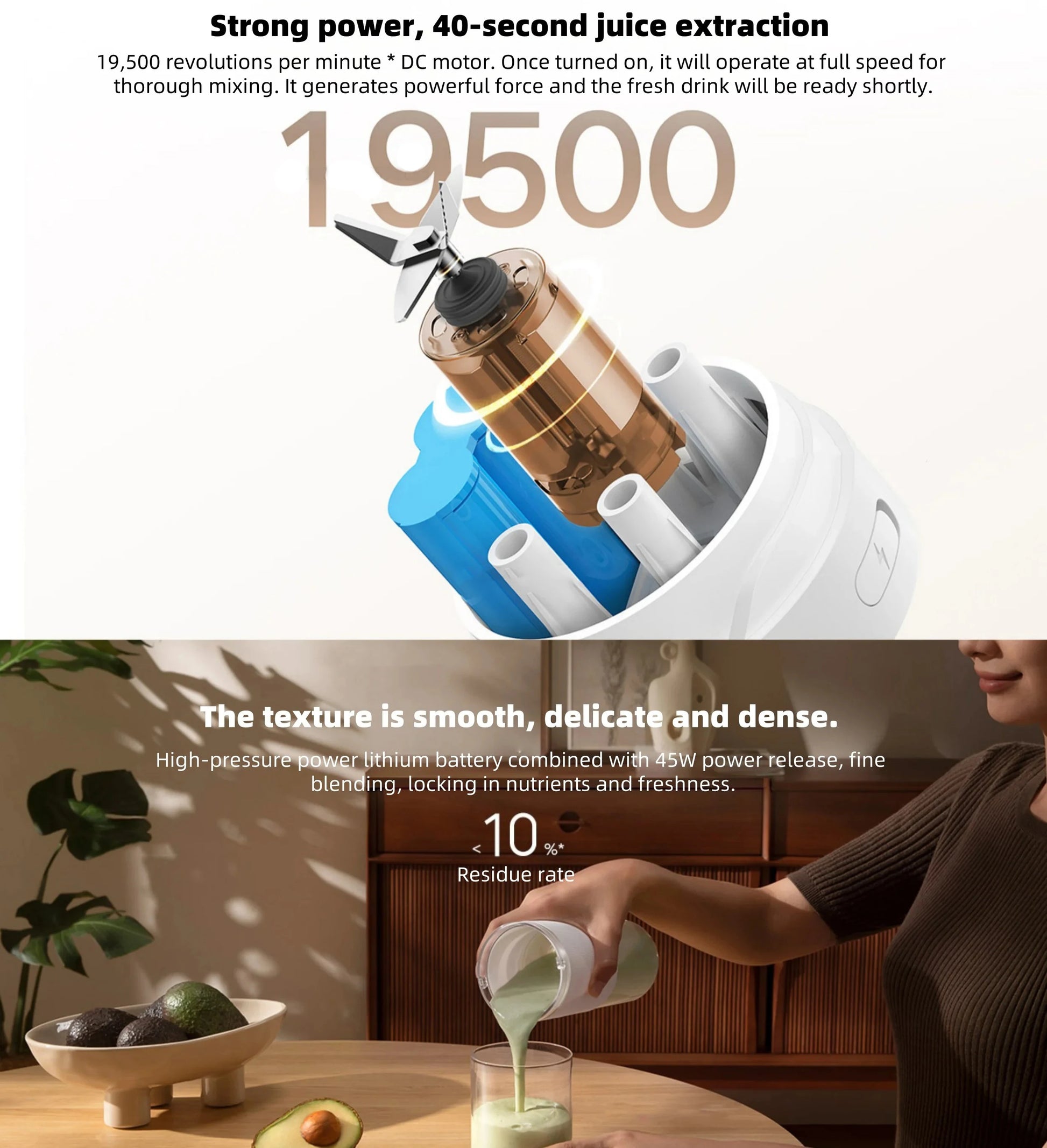 Battery lasts longer than I expected and it crushes fruit well Perfect for daily use